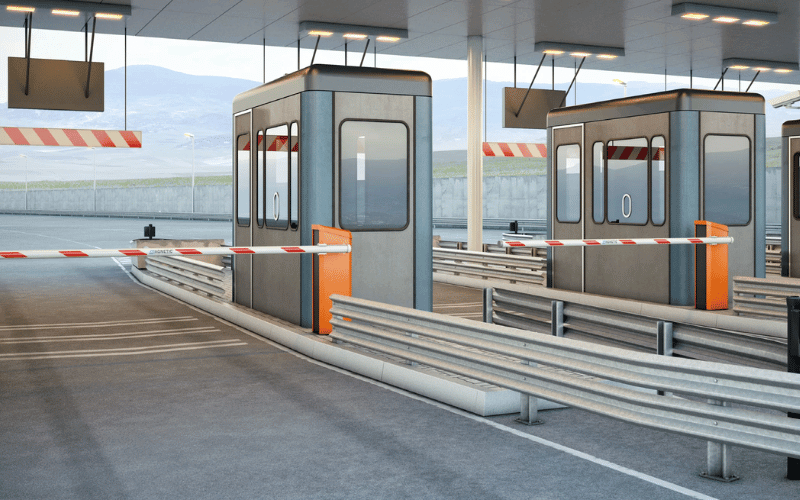 An automatic toll gate system is designed to process toll payments without human intervention. Vehicles pass through the toll gate, and the system uses technology to detect and charge for the toll.